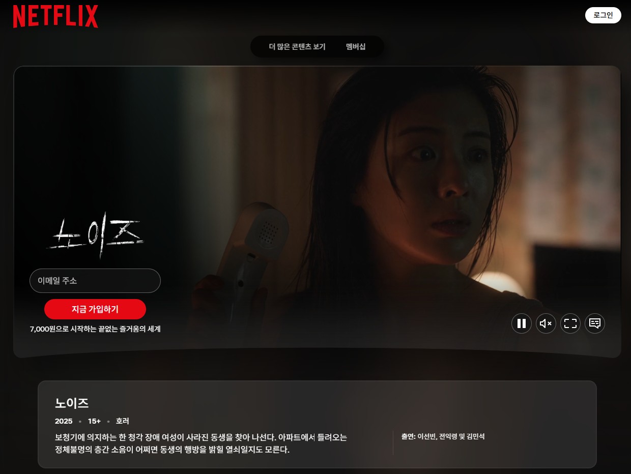 많은 분이 기대하신 넷플릭스 공개로 영화 '노이즈'를 감상할 수 있습니다.