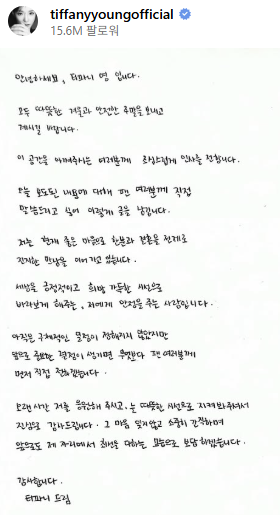 - 티파니: "저에게 안정을 주는 사람입니다. 앞으로 좋은 결정이 생기면 팬 여러분께 먼저 직접 전하겠습니다."