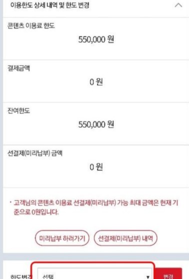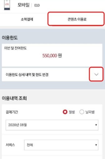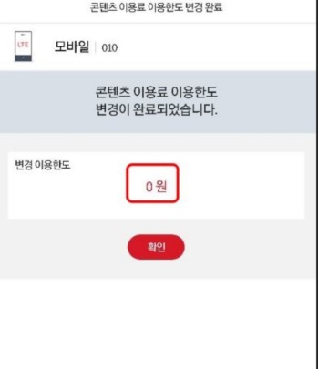 - 경로: [마이페이지] → [요금/서비스] → [휴대폰 결제 내역] → [한도 변경]