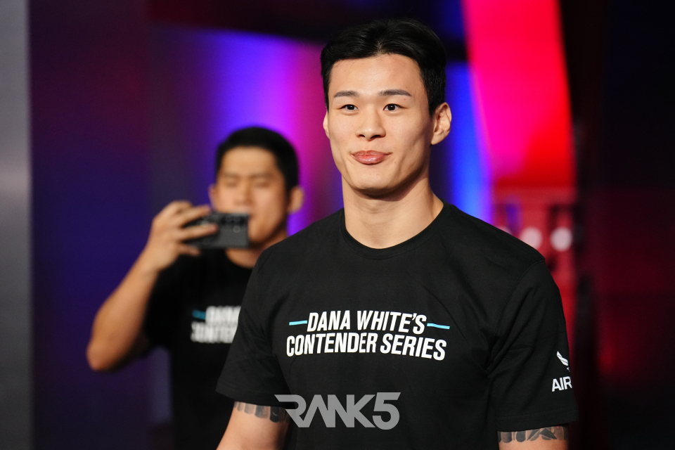 '데이나 화이트의 컨텐더 시리즈(DWCS)'는 UFC 회장인 데이나 화이트가 직접 지켜보고 선수를 계약하는 오디션 프로그램입니다. 이기더라도 경기력이 좋지 않으면 계약하지 않을 만큼 냉정한 무대이죠.